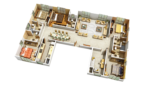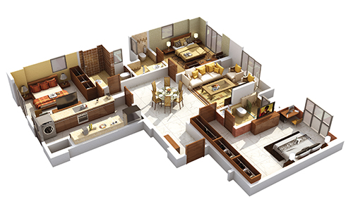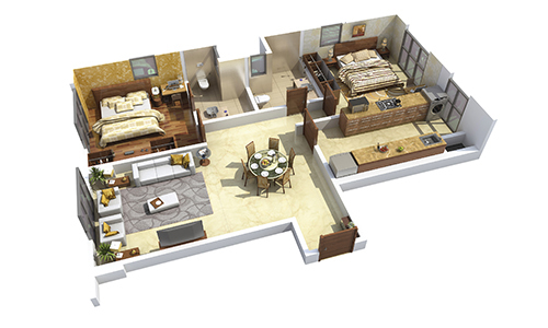 The aesthetically architectured five-storey podiums make for car-parking space and form a great sub-design that builds in largeness and beauty to the overall superstructure. The project, a mix of 2, 3 and 5 1/2 BHK apartments, is a true symbol of peak living. These spacious air-conditioned super-luxury nests make a fashion statement, which separately adds premium value to the project. The Open-Air Recreational Space on the fifth floor leads to a terrace garden that’s designed with care to offer open relief to the enclosed structure.